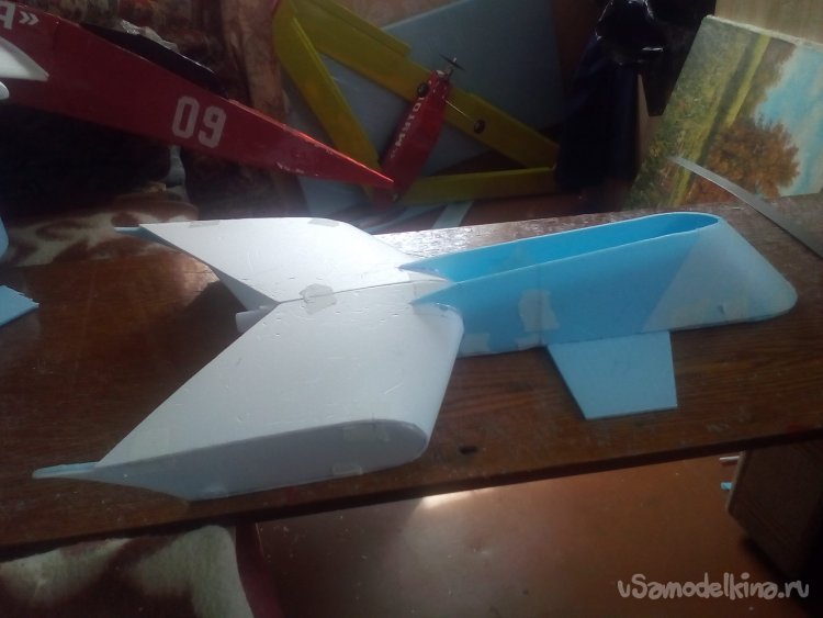 Что бы сэкономить время и подложку решил использовать крылья, которые сделал уже давно, когда хотел построить авиамодель летающее крыло.