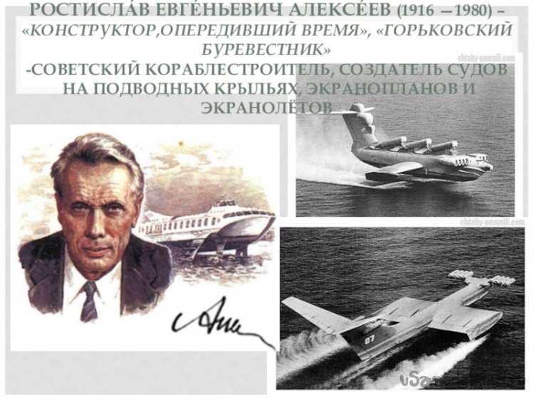 В дальнейшем его идеи были подхвачены гениальным конструктором экранопланов Ростиславом Е Алексеевым.