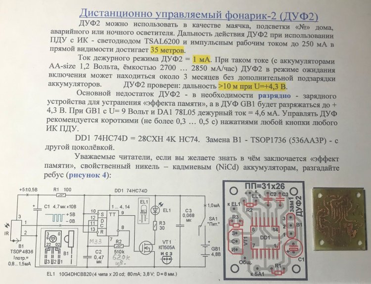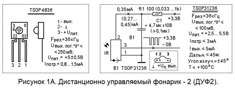1). Хорошо, что есть замена инфракрасного фотоприёмника более низковольтным. Это позволить снизить напряжение питания ДУФ2 до 3 Вольт.