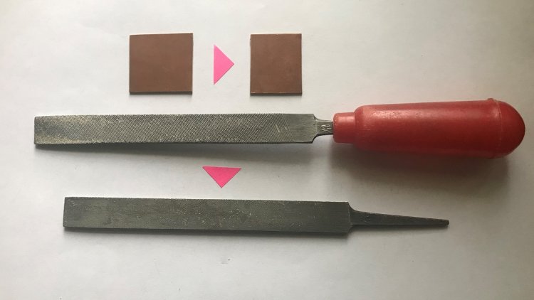 Вырезанную ПП последовательно обрабатывают на личном и бархатном плоском напильнике, зажимаемом струбцинкой на рабочем столе.
