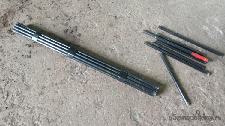 И вот, как-то мне попались в руки подходящие материалы для изготовления стержней болтов. Это композитные трубки, ранее бывшие частями дуг от палатки. И я решил изготовить десяток "боеприпасов".