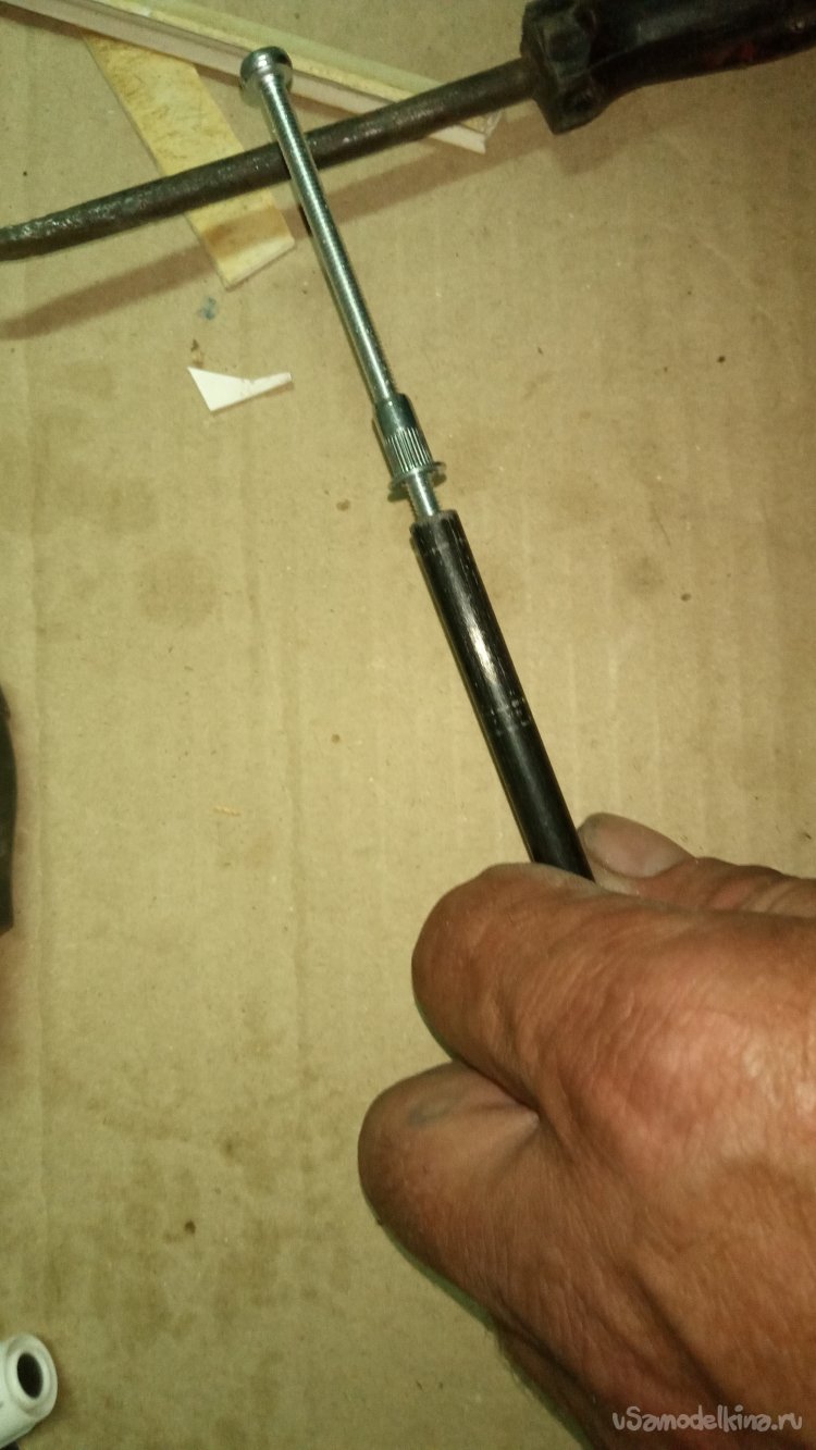 Стержни представляют собой трубку. В ней я нарезал резьбу М4 на небольшую глубину. Это было очень легко сделать метчиком: