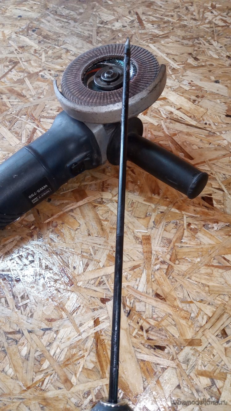 После того, как смола застыла, я заточил наконечники. Сделал это при помощи шуруповёрта и болгарки с лепестковым кругом: