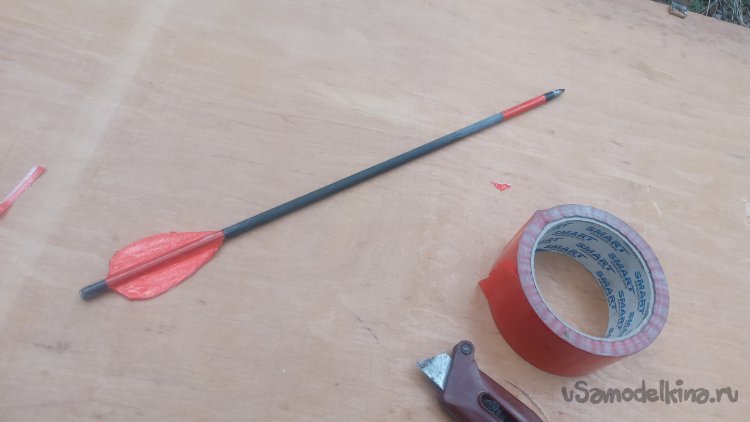 Для дополнительного укрепления оперения, а так-же, для того, чтобы сделать болты более заметными, я использовал ярко красный скотч.