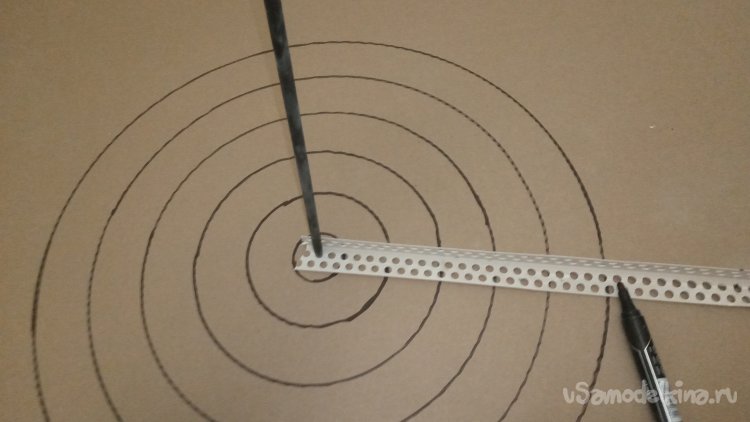 Для того, чтобы быстро и легко нарисовать мишень, вместе с "оружием" у меня всегда хранится маркер и кусок строительного пластикового уголка, который закладывается под шпатлёвку для формирования наружных углов.