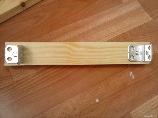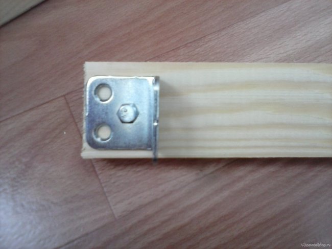 Далее к брускам с обоих концов прикрепляем по два уголка (так как полок будет всего 2), предварительно сделав отверстия с помощью дрели.