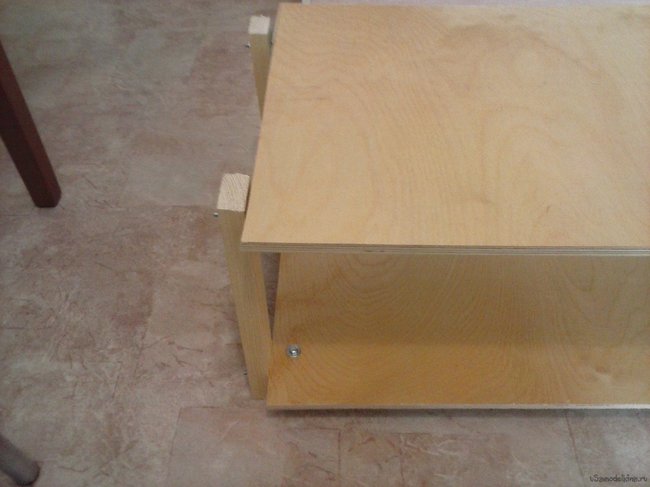 Для нижней части уголок делаем впритык, а для верхней отходя на 1 см (толщина фанеры).