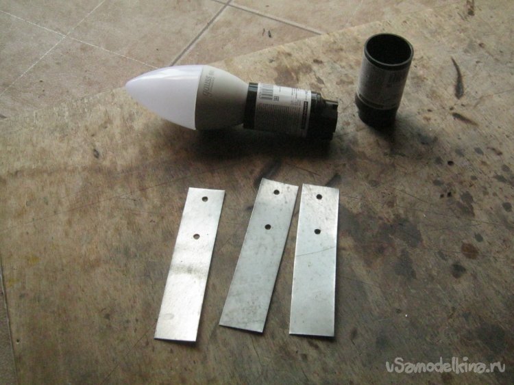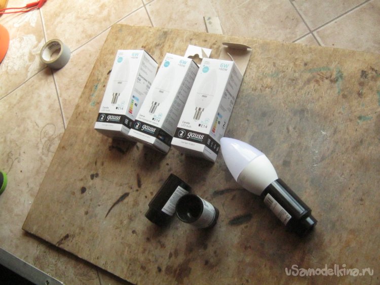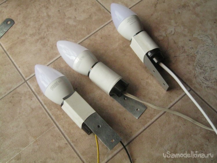 Фото 7. Подготовленные лампы с цоколями перед установкой в импровизированный светильник. Замечу – простая и недорогая основа для горизонтальной установки нешироких ламп и в другие самодельные осветительные конструкции.