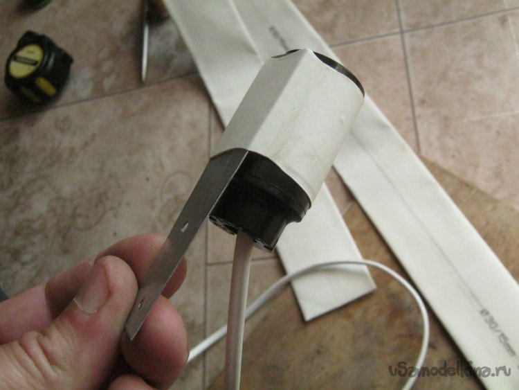 Фото 6. Ключевой момент – простое крепление. Закрепил на патронах жестяные крепления недлинными кусочками термотрубки. Усадил ее строительным феном.