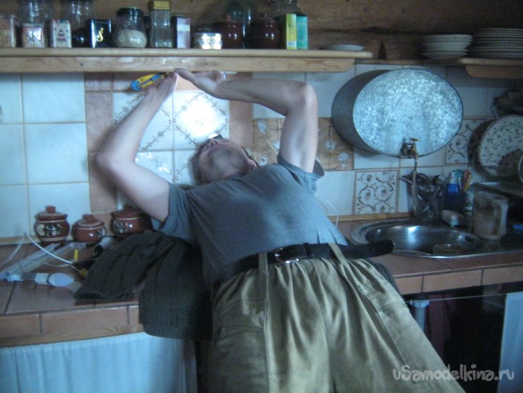 Фото 9. Электромонтаж. Очередное тайцзи-цюань. Фонарик на лоб, на холодный кафель стола – теплый свитер, под голову подушку.