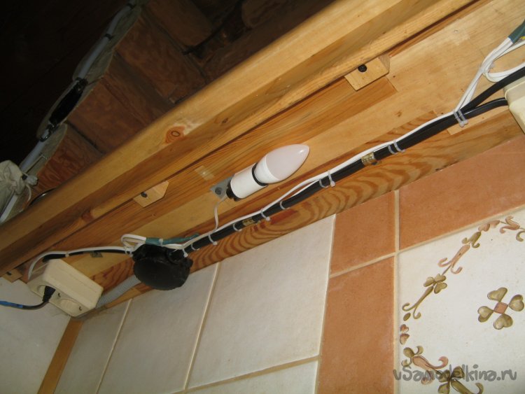 Высота ламп вполне позволяла заменить ими длинные светильники, без всякой переделки полок. Три условно точечных источника позволят получить более-менее равномерное освещение. Суперзадача – изобрести, по возможности, простое горизонтальное крепление патронов-цоколей к деревянной поверхности (Фото 3…7).