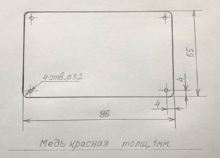 Металлические утяжелители основания корпуса (в количестве 2 штук) размером 96 х 55 мм. сделаны из меди толщиной 1 мм. При использовании более тонкого материала их количество может быть увеличено до 3 … 4 штук.