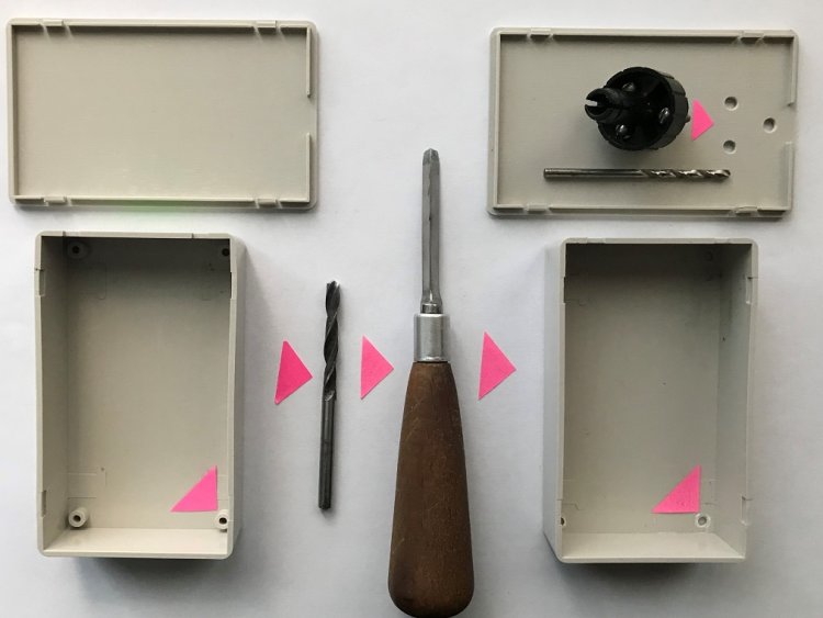 Для увеличения рабочего объёма корпуса (чтобы медные утяжелители «легли» на дно корпуса), полые пластмассовые цилиндры-столбики, расположенные по углам внутри корпуса, срезаются стамеской или подобным инструментом.