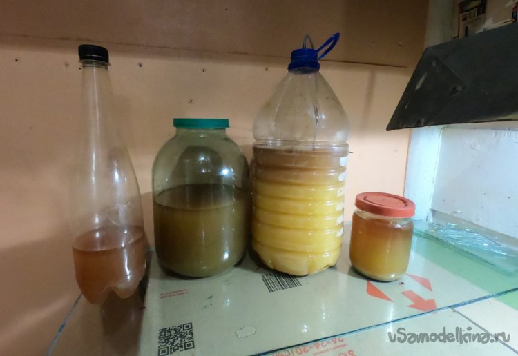 Как видно, даже цвет у всех разный. бутылка постояла в теплом светлом месте, а банка с бутлей стояли рядом, но цвет все равно разный. Так что на финальный вкус влияет все, место, темпеатура, и даже форма емкости!