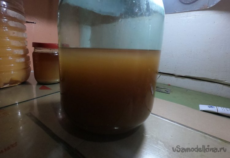 Вот уже начинает становиться кристально прозрачным. Я пил еще мутноватым, побочек никаких. Еще буду пробовать газировать в бутылках.