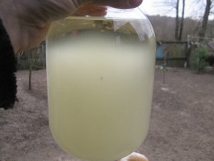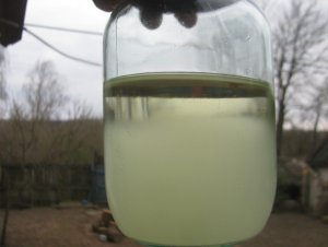 Как я уже сказал, сидр в идеале должен быть прозраным, янатрным. Для этого надо или очень долго ждать, или осветлять. Вычитал в интернет, что исопльзуют бетонитовую глину. Просто размешиваешь в сидре глину, она свзявает всю эту взвесь и с ней выпадает в осадок.