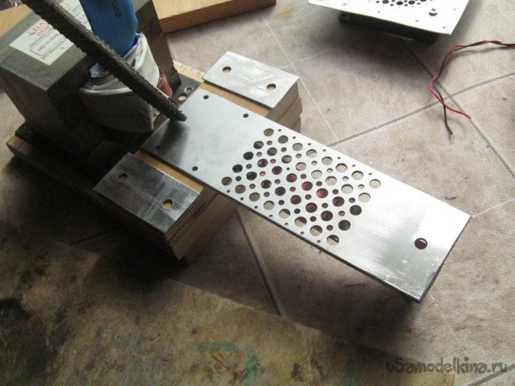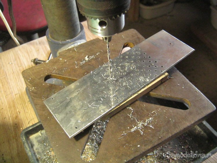Фото 5. Первое сверление – нетолстым сверлом. Отверстия при этом точнее, а сверлить удобнее. Дальше, при необходимости, ряд отверстий рассверливается. Кроме прочего, это позволило последовательно вдумчиво подобрать жесткость.