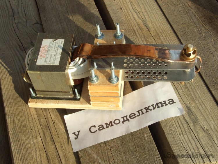 Планировалось к подготовленным концам шины прижимать сменные плоские наконечники-электроды. Таким образом, мест соединений будет всего два и сечение провода нигде не уменьшается. Сама шина из нетолстых полос фольги, мягкая, гибкая и при работе будут приняты меры по сохранению её исходной гутаперчивости.