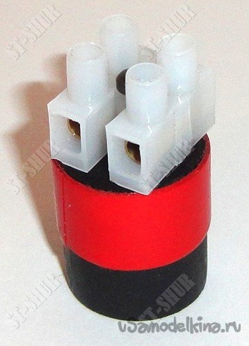 Упор для контактной группы был изготовлен из круглого деревянного профиля диаметром 22,5мм и длинной 26мм (окрашен лаком ХВ-784). Сверху на упоре шурупом диаметром 3мм закреплена винтовая клеммная колодка.