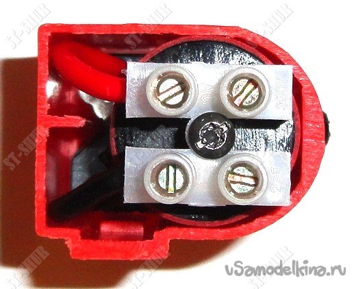 При сборке переходника, упор контактной группы достаточно надежно фиксируется в корпусе шурупом диаметром 3мм.