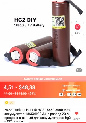- Li-ion аккумуляторы «Samsung» INR18650-15Q 3,6V 1,5Ah.