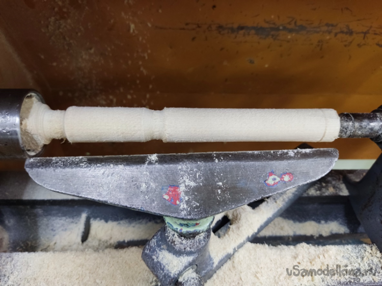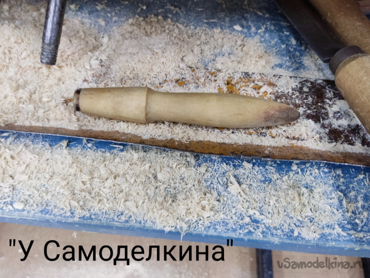 4. Дело за малым. Придание форм. Главное не перестараться и не сточить лишнего, поэтому периодически контролируем диаметр заготовки штангенциркулем и по не многу делаем скругления косой стамеской.