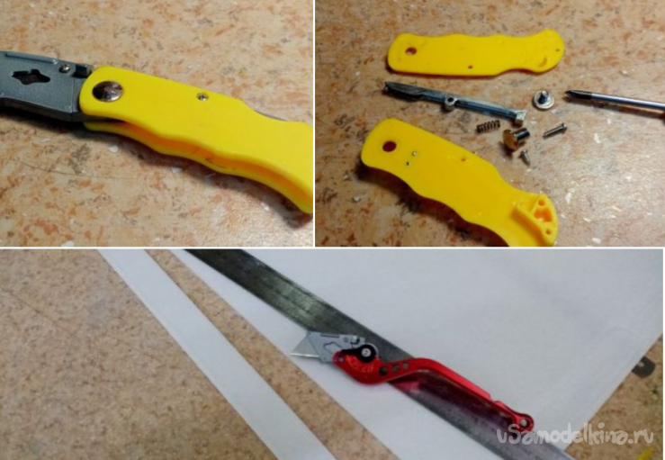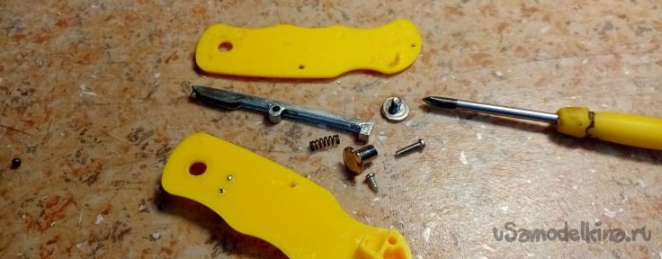 В моделке разбираю складешок на запчасти, мне для изготовления уникального прибора нужна только передняя часть с зажимом лезвия.