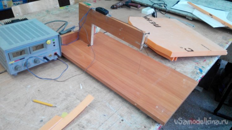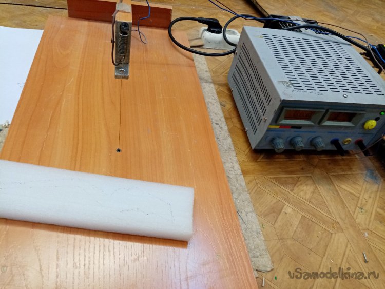 Затем на самодельном станке при помощи нихромовой нити вырезаю контур, для укладки.