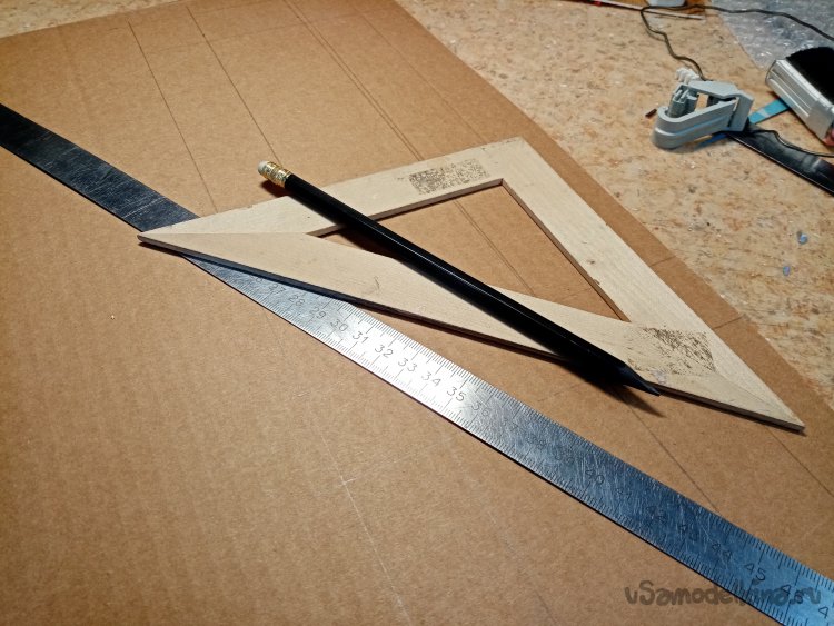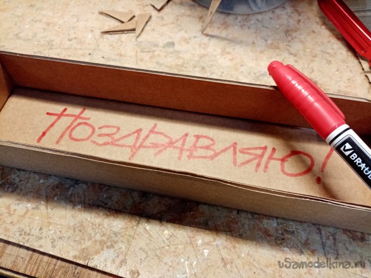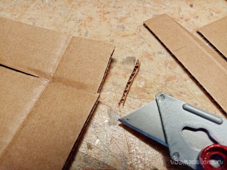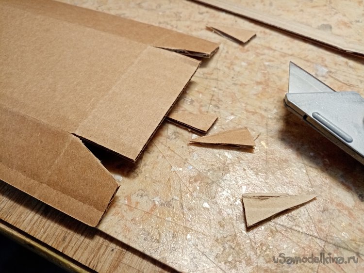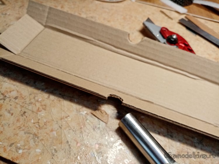 Контуры нижней половинки коробочки размечены, можно вырезать. Еще раз проверяю работоспособность сделанного ножа.