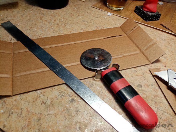 Зиговку по сгибам коробочки выполняю слегка затупленным ножом для пиццы. «Великим размыкателем» девайсов. Телефонов, пультов, фотоаппаратов. Этот предмет у меня остался от прошлой жизни, когда работал в сервисе.