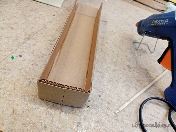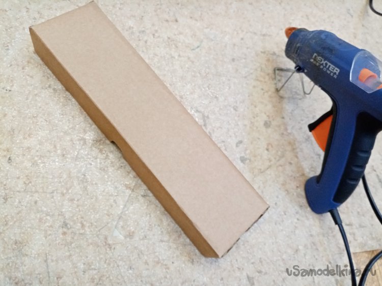 Термопистолетом склеиваю клапана крышки коробочки. Получилось удачно, крышка хорошо держится, легко снимается.