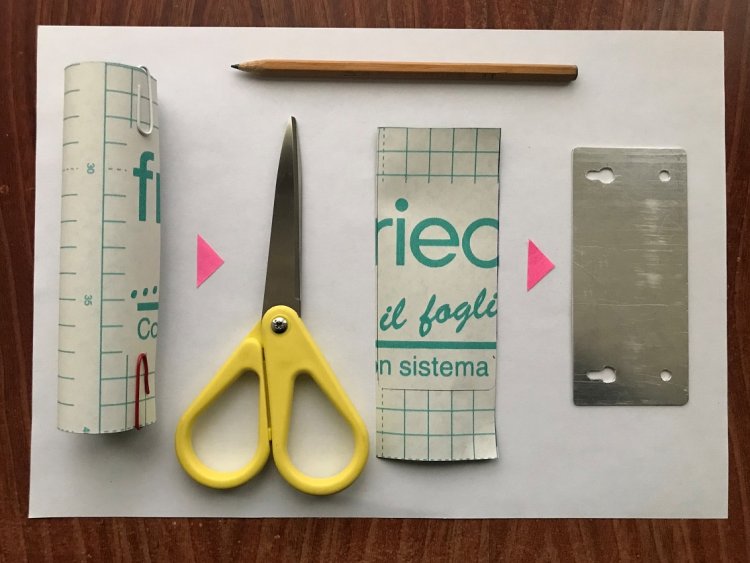 Текстурная бумага для оклеивания планки с ушками размечается карандашом и вырезается обычными ножницами с небольшим припуском.