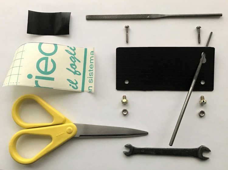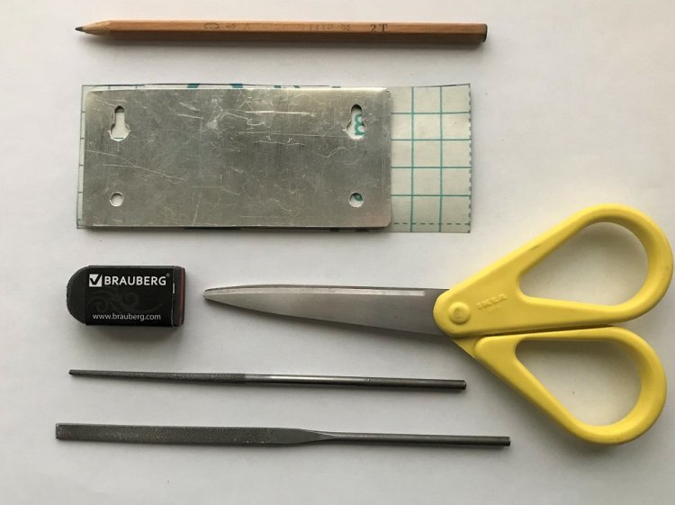 1). Кусочек листовой дюрали 110 х 50 мм толщиной 0,5 … 1 мм. для изготовления планки навесных ушек;