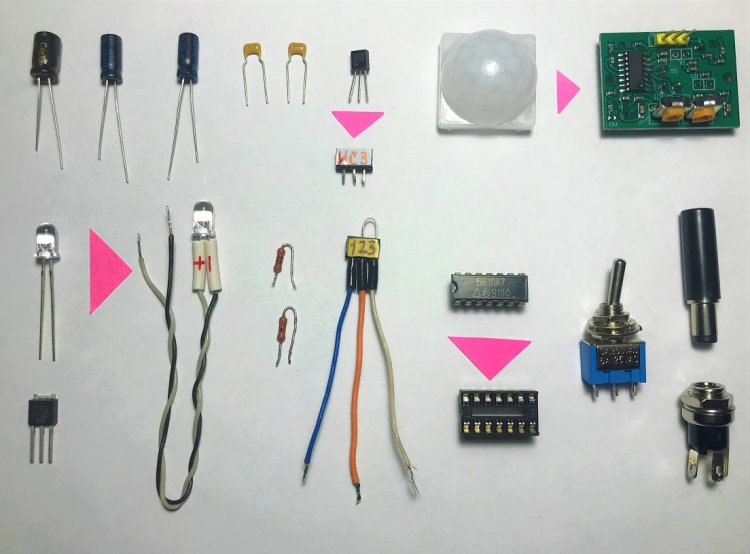 2). Касательно количества применённых светодиодов, можно сказать: «Это какая-то цветомузыка, а не датчик движения». Синий светодиод «Вкл» вполне можно исключить.