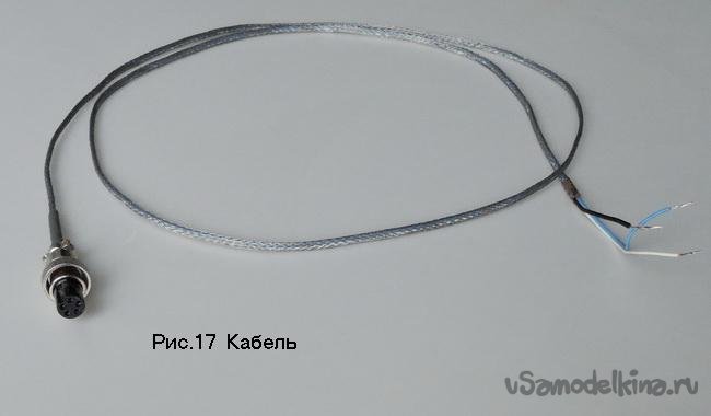 Выходной кабель (Рис.17) также выполнен из 2-х жилки в экране МГШВэ 0,2мм2. Поверх кабеля желательно одеть кембрик.