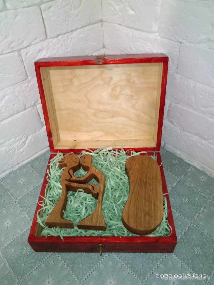 После того, как масло пропитало дерево и высохло, в коробку положил наполнитель, а сверху на него уложил фигурки. В конечном счете получилось вот такая интересная парная композиция, которой я, кстати, доволен.