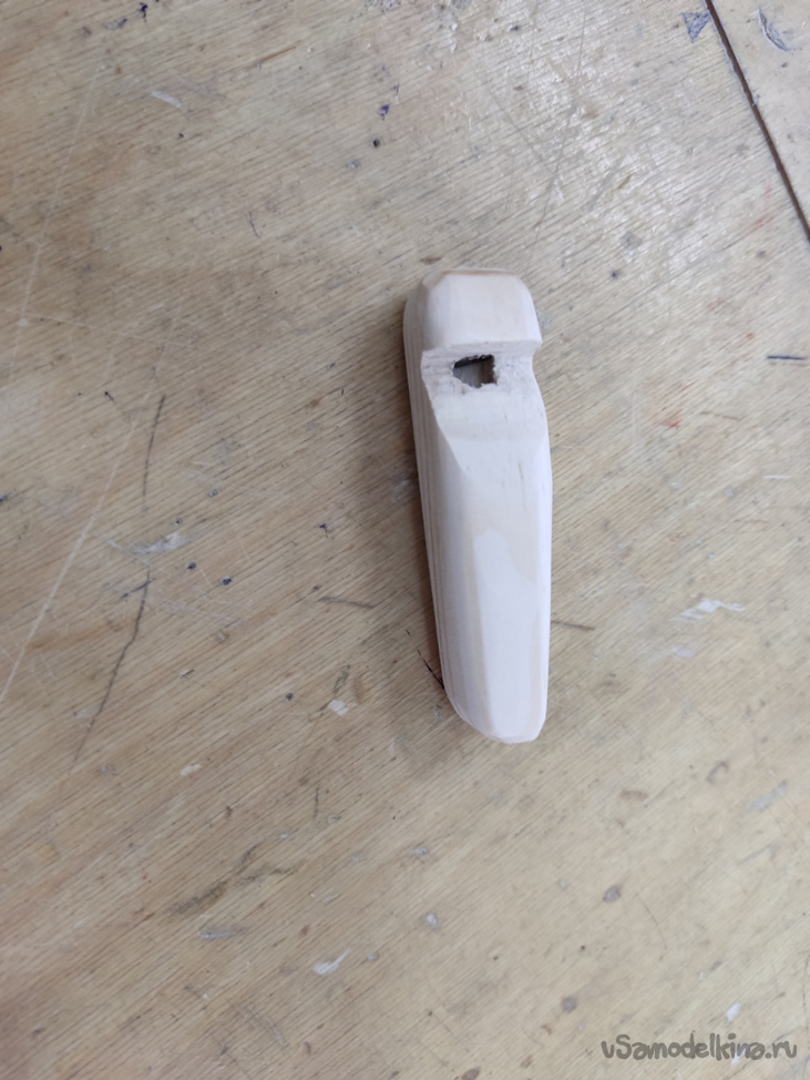 10. Шлифуем изделие, убирая заусёнки и неровности, делаем красивые и ровные переходы. Хотя тут каждый сам выбирает для себе, какой формой будет свисток, насколько скруглять края и т.д. Главное не перестараться и не сточить лишнего