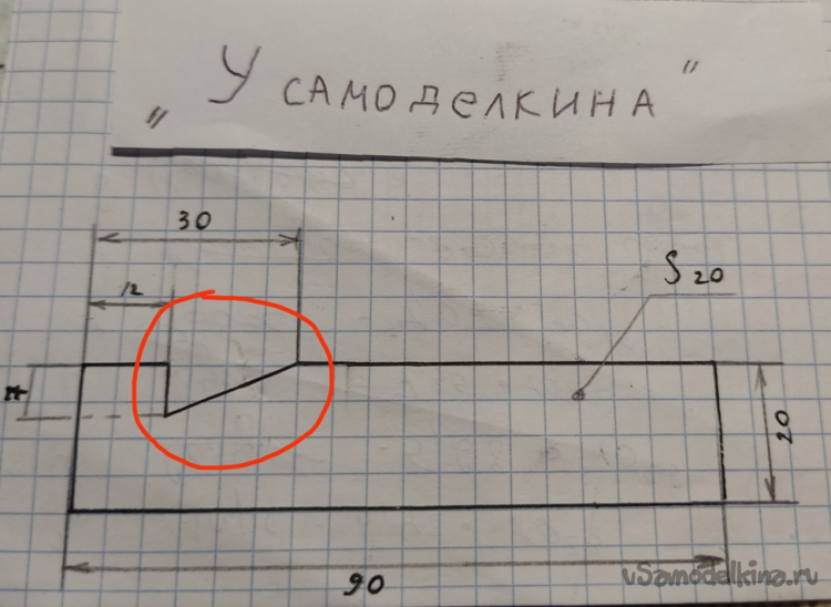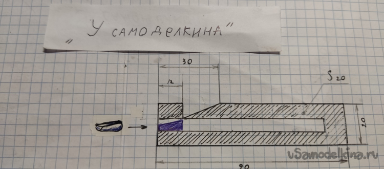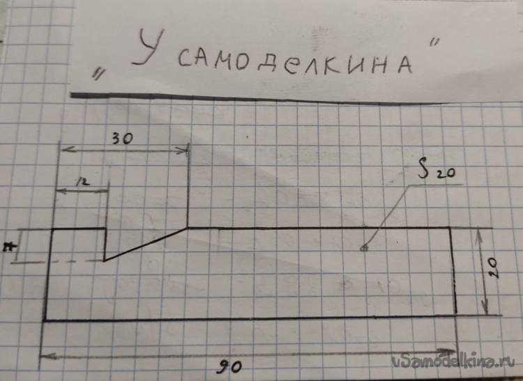Для начала определимся с размерами. В моём случаи это брусок 20 на 20 миллиметров длинной 90 мм.