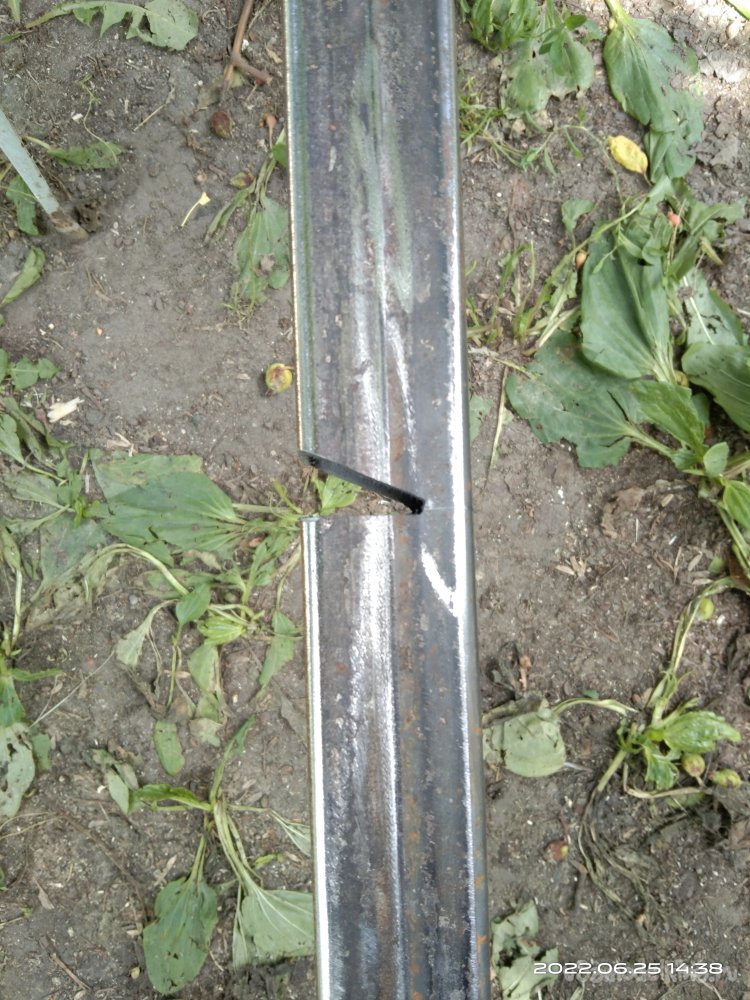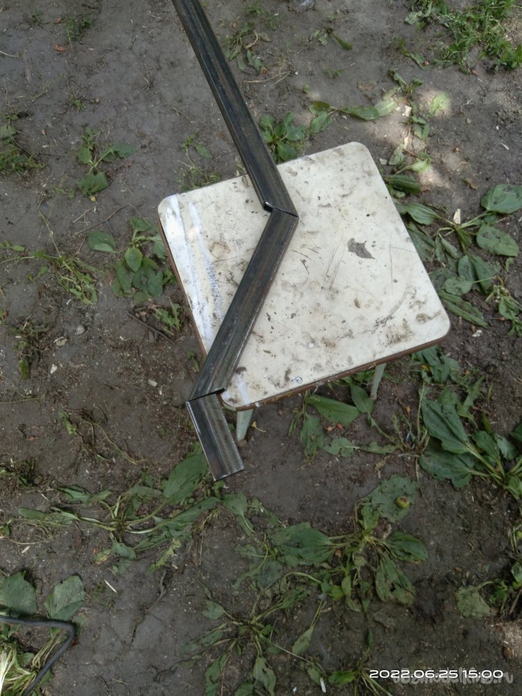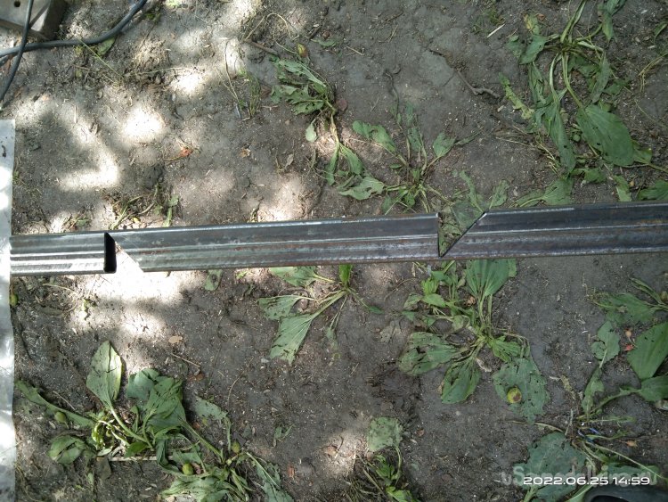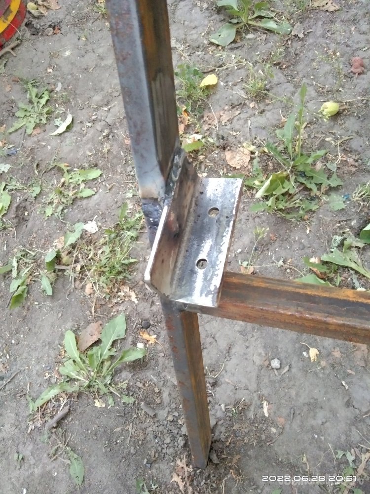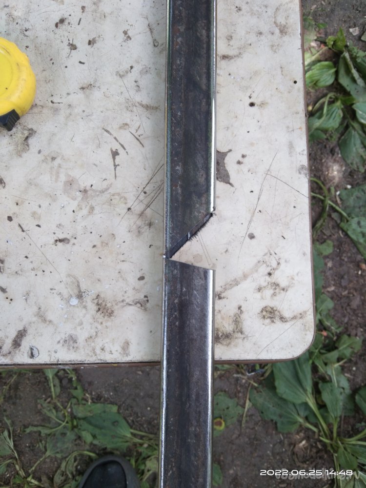 Для изготовления горки я приобрел три профильных трубы сечением 40х20 мм. Вся основа была сварена с него. Нарисовал себе для образца на листе бумаги ту форму, какую хотел получить и приступил к работе. На профиле сделал разметки в тех местах, которые необходимо согнуть. Затем болгаркой вырезал углы, по которым профиль и сгибал. Таких деталей мне понадобилось две штуки. Это боковины будущей горки. Места изгибов тщательно проварил. Вот такая деталь получилась.