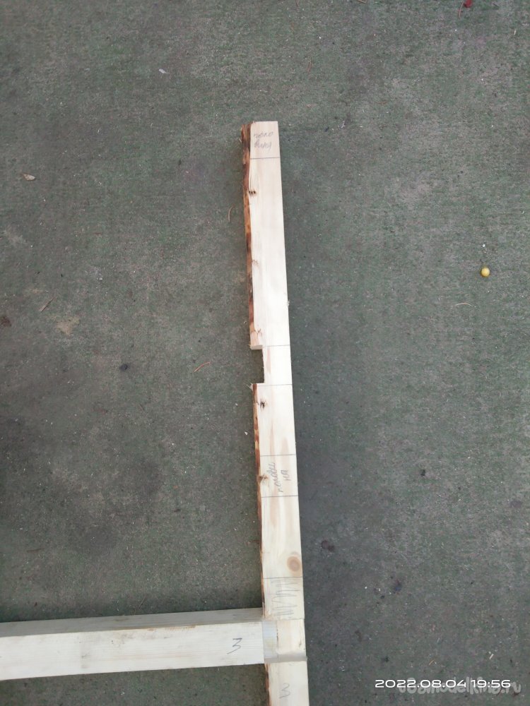 Определившись с размерами предполагаемой скамьи, с помощью торцовочный пилы напилил заготовки-бруски нужных мне размеров. Затем, согласно схеме, расчертил на заготовках места для пазов. Их я выбирал той же торцовкой, а потом доводил древесину до нужного состояния гладкости стамеской.