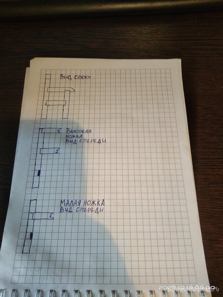 Для сборки скамьи в качестве основного материала я использовал сосновый брус 50х50 мм. Как пишут мастера во многих интернет форумах, сосна не очень хорошо подходит для таких изделий, так как выделяемая ею смола будет портить изделие, на нем будет невозможно сидеть и тому подобное. Но лично по своему опыту могу сказать, что в хорошо просушенных и распиленных брусках такой неприятности еще не замечал. Конечно, бывало такое, что в волокнах древесины заметны вкрапления этой смолы, особенно на сучках, но так такую часть можно и не использовать. Поэтому все таки материал - сосна. Да и цена на нее не слишком уж сильно кусается. Но, как говорится, выбор материала сугубо индивидуален. Для большего понимания процесса выборки пазов нарисовал вручную несколько схем их размещения с разных сторон. Думаю она будет не лишней и поможет вам в изготовлении такой же скамьи.