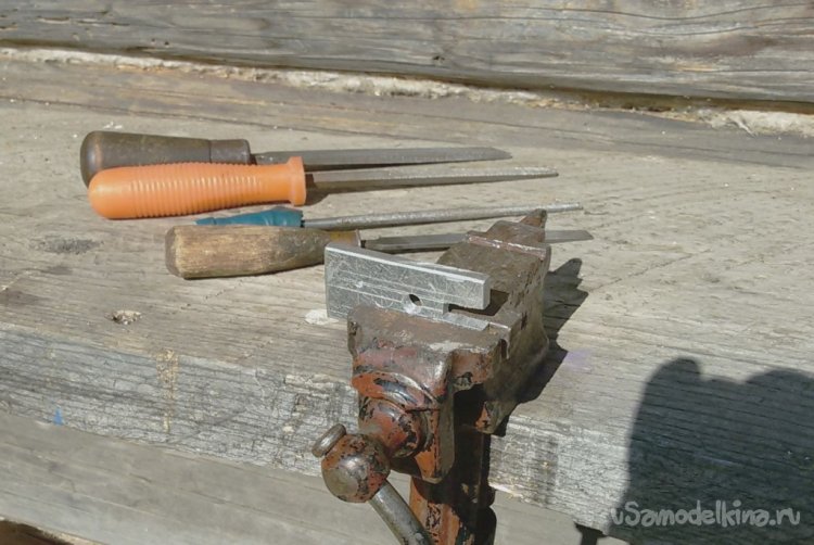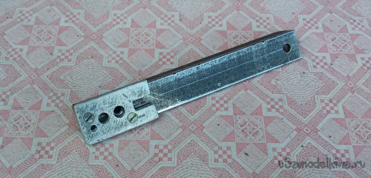 По центральной линии заготовки вырезаем направляющий паз для перемещения фиксатора (шарик диаметром 5,0 … 5,5 мм) под действием пружинки диаметром 4,5…5,0 мм.