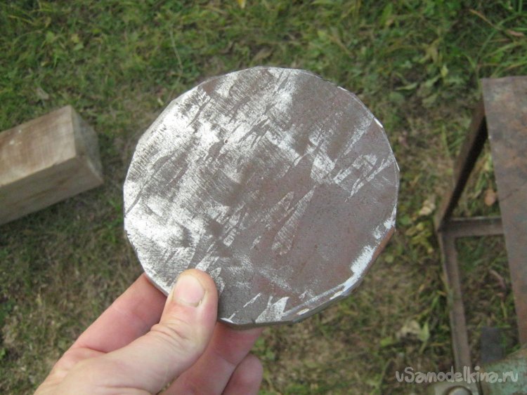 Фото 7. Отрезной машинкой обрезал заготовку до квадрата, затем углы у квадрата и еще разок – все сильно выступающее. Уже близко к кругу, но не совсем.
