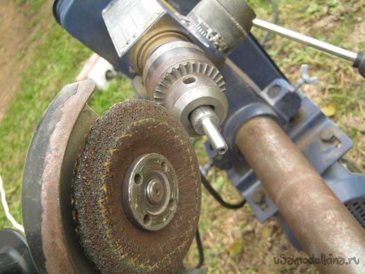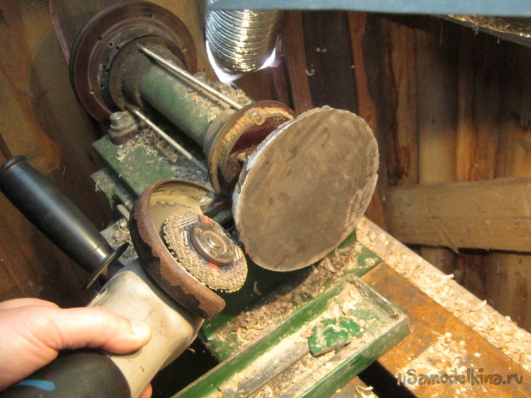 Фото 9. Примененный принцип точения. Работает станок, работает болгарка. Инструмент – абразивный зачистной диск.