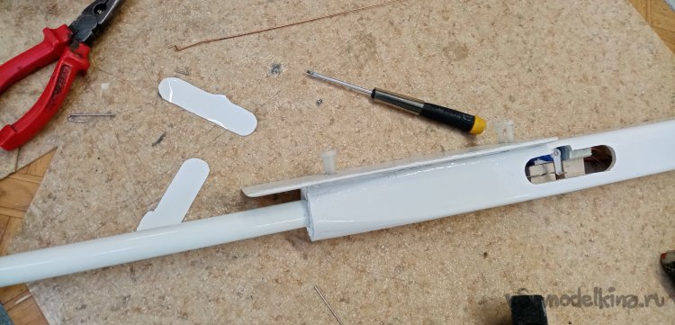 В хвостовую балку нужно установить боудены с тягами управления на руль высоты и руль направления.