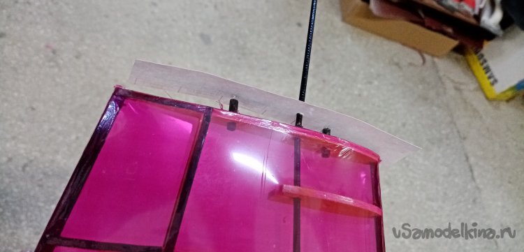 Дополнительно пускаю парочку нитей сверху и снизу задней кромки. И так, что имею по всему хвостовому оперению. Руль высоты готов.