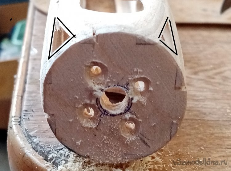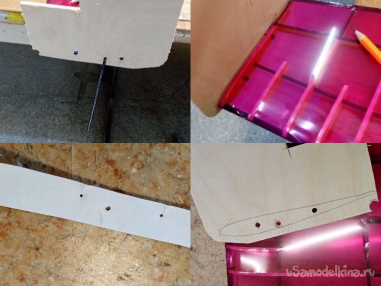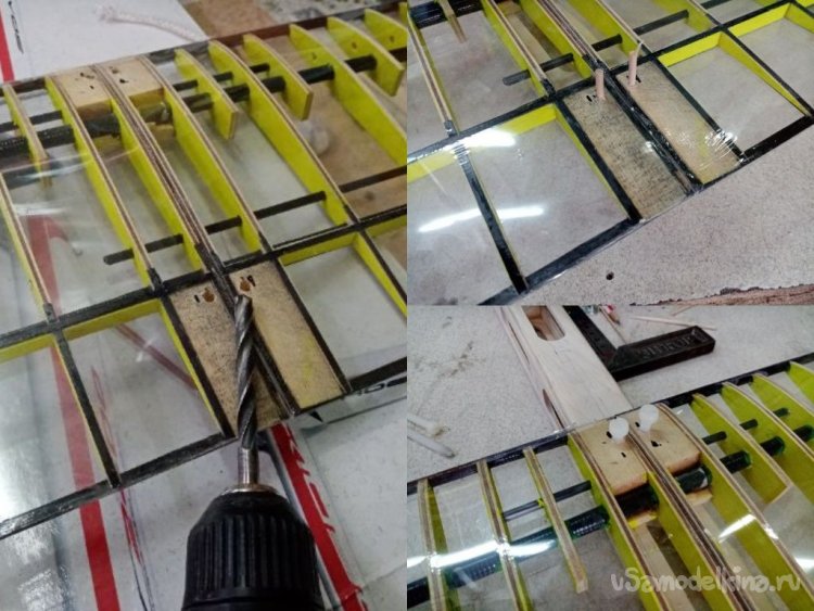 Для установки крыльев, просверливаю отверстия в усилениях центроплана. По этим отверстиям буду ориентироваться при установке их на фюзеляж.