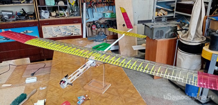 По классической схеме, бальза, карбоновые трубки, угольные планки, прозрачная пленка. После стартового броска проект заморозился в силу различных обстоятельств.