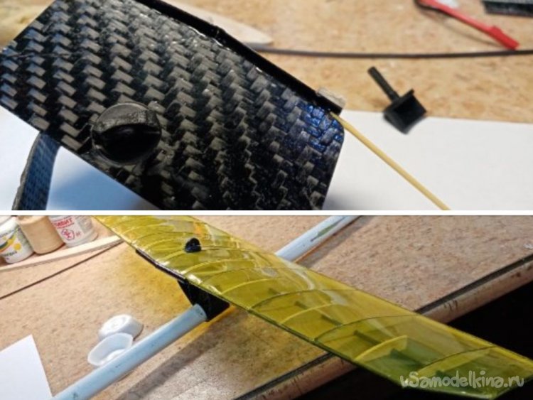 После сборки системы управления поворотного руля высоты приклеиваю всю систему на хвостовую балку.