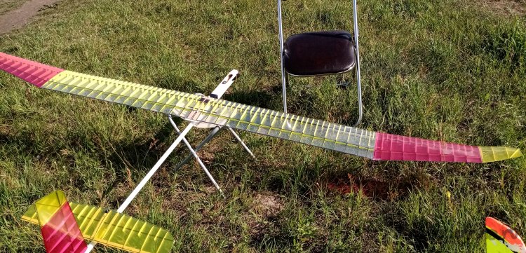 Планер задумывался как вариант «чистого крыла», без элеронов и флаперонов. Управление по двум осям, рулем направления и рулем высоты. Несколько лет назад переделывал свободнолетающий планер класса А1 в радиоуправляемый. Рулился он тоже по двум осям. Летал на нем довольно успешно парочку сезонов. Причем зимой и летом. Одно «Но» аппаратик слишком легкий получился. При размахе в два метра с хвостиком, с полетным весом в 400 грамм. И профиль свободнолетающей модели не позволял пробивать ветер больше 4 метров в секунду.